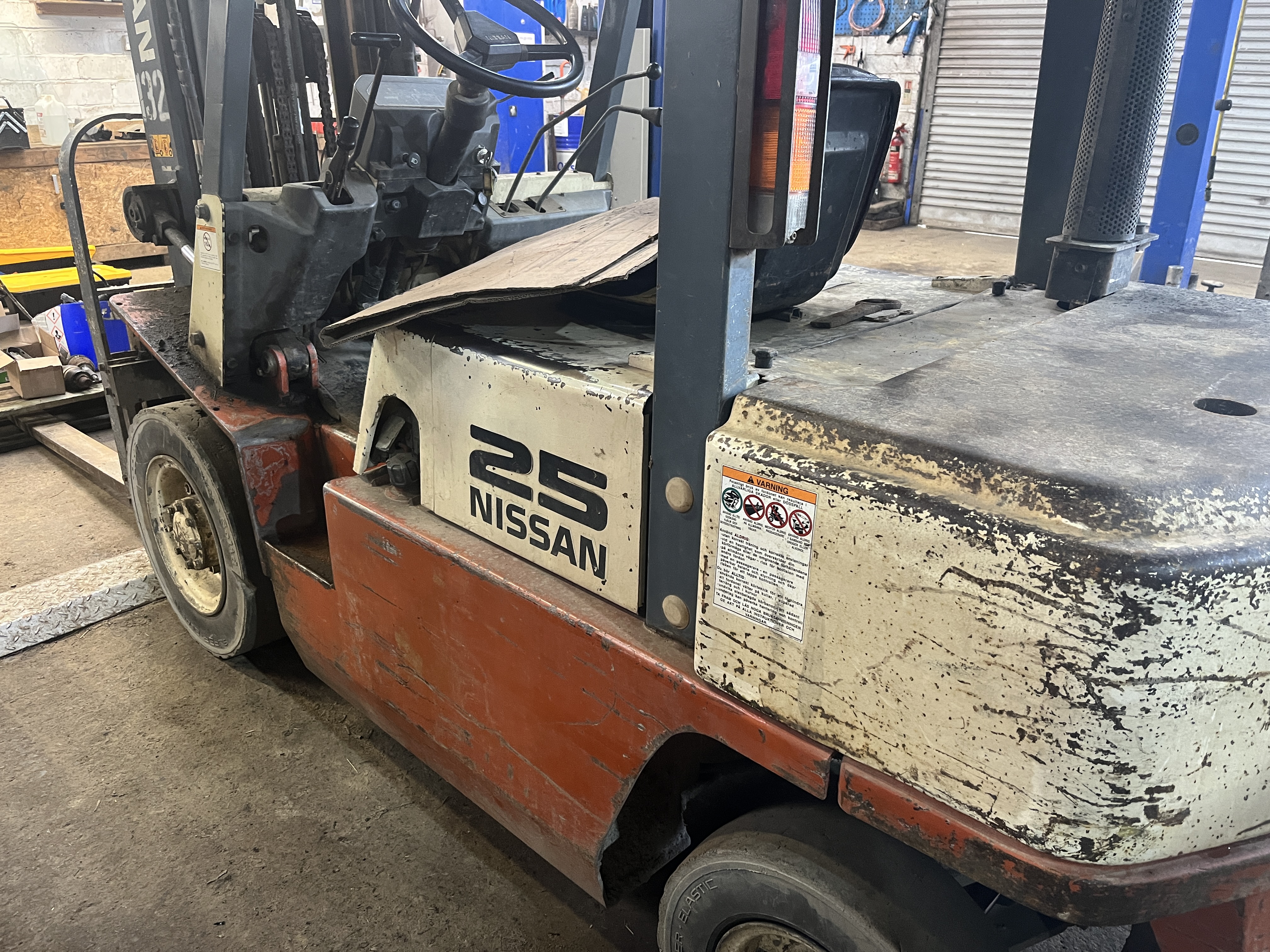 - Nissan 25 diesel forklift, still been in daily use, has a Lola ticket until July 2026, has been our own machine for 12 years