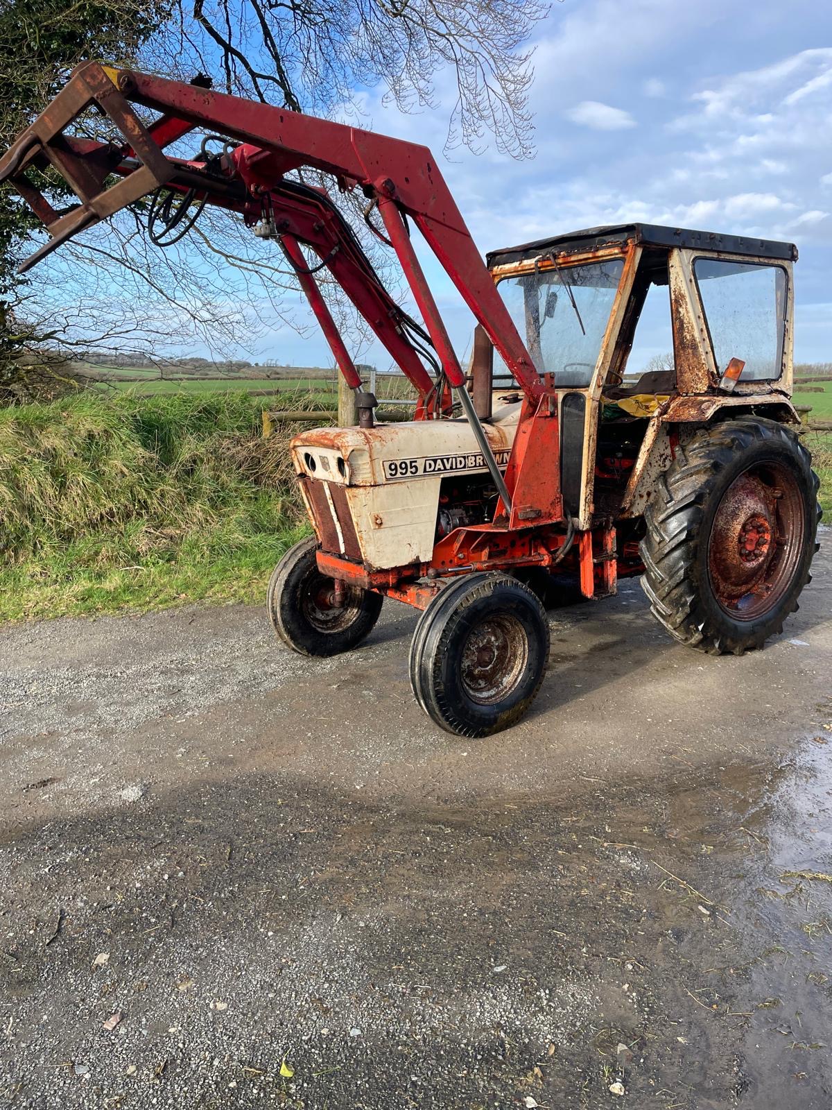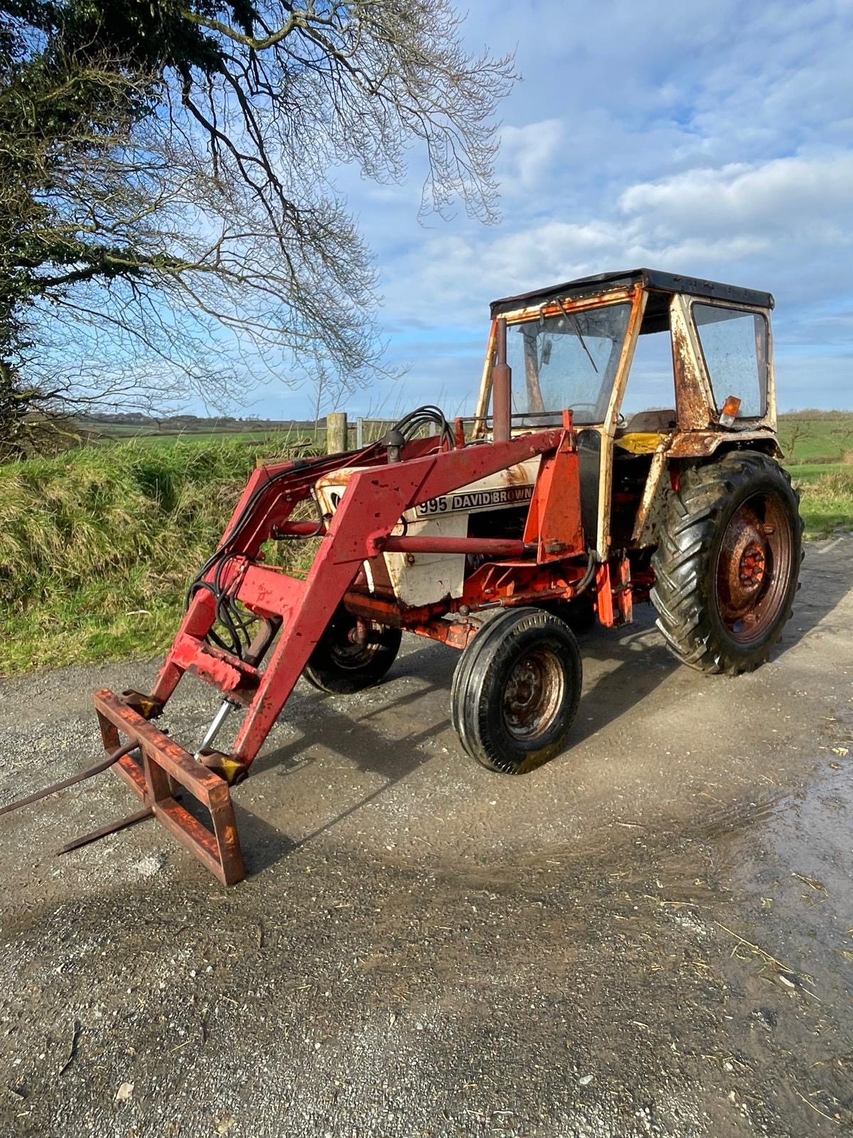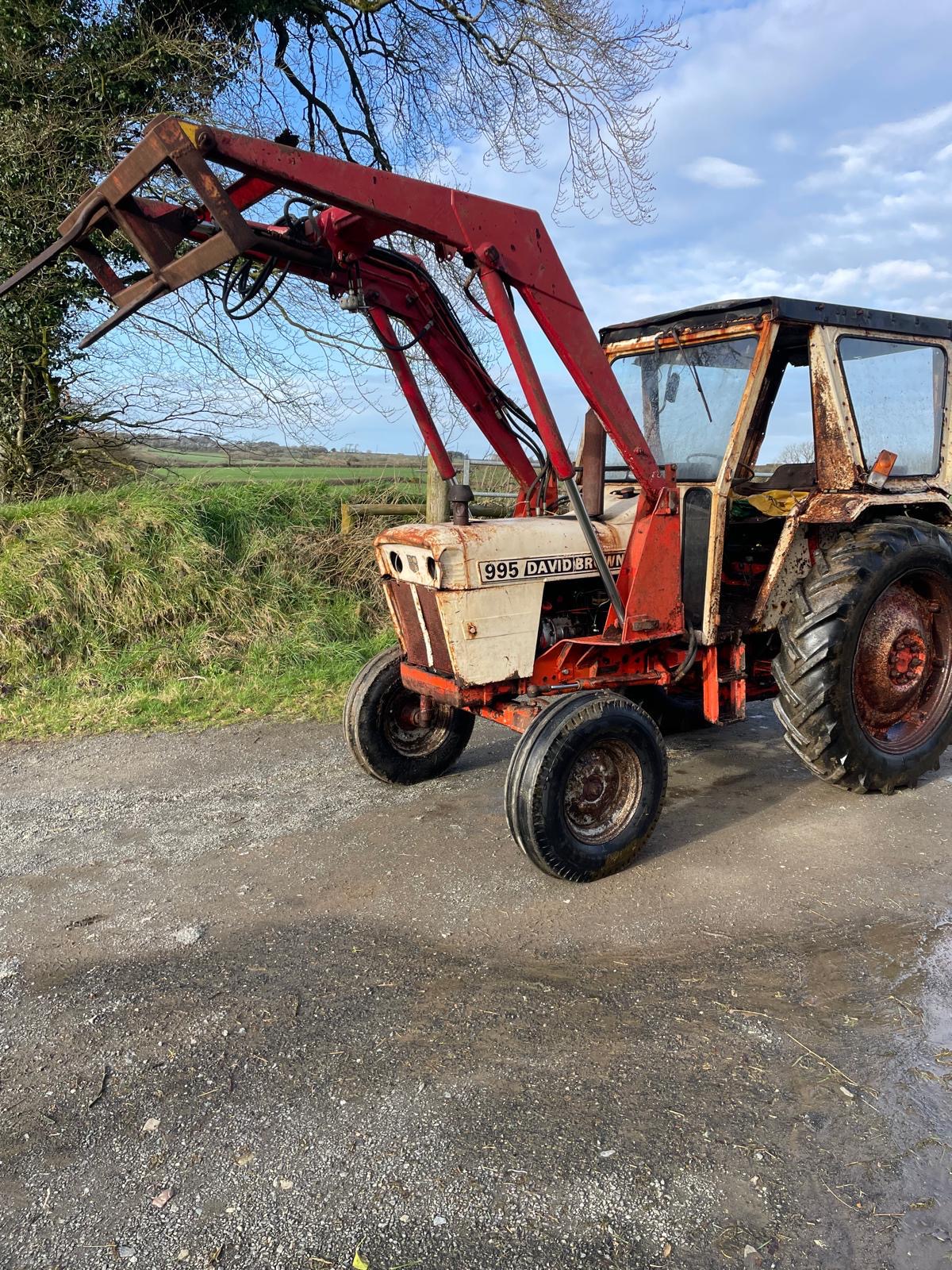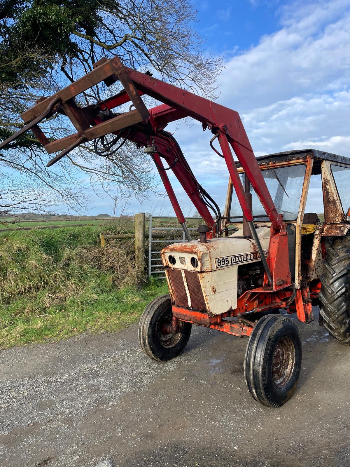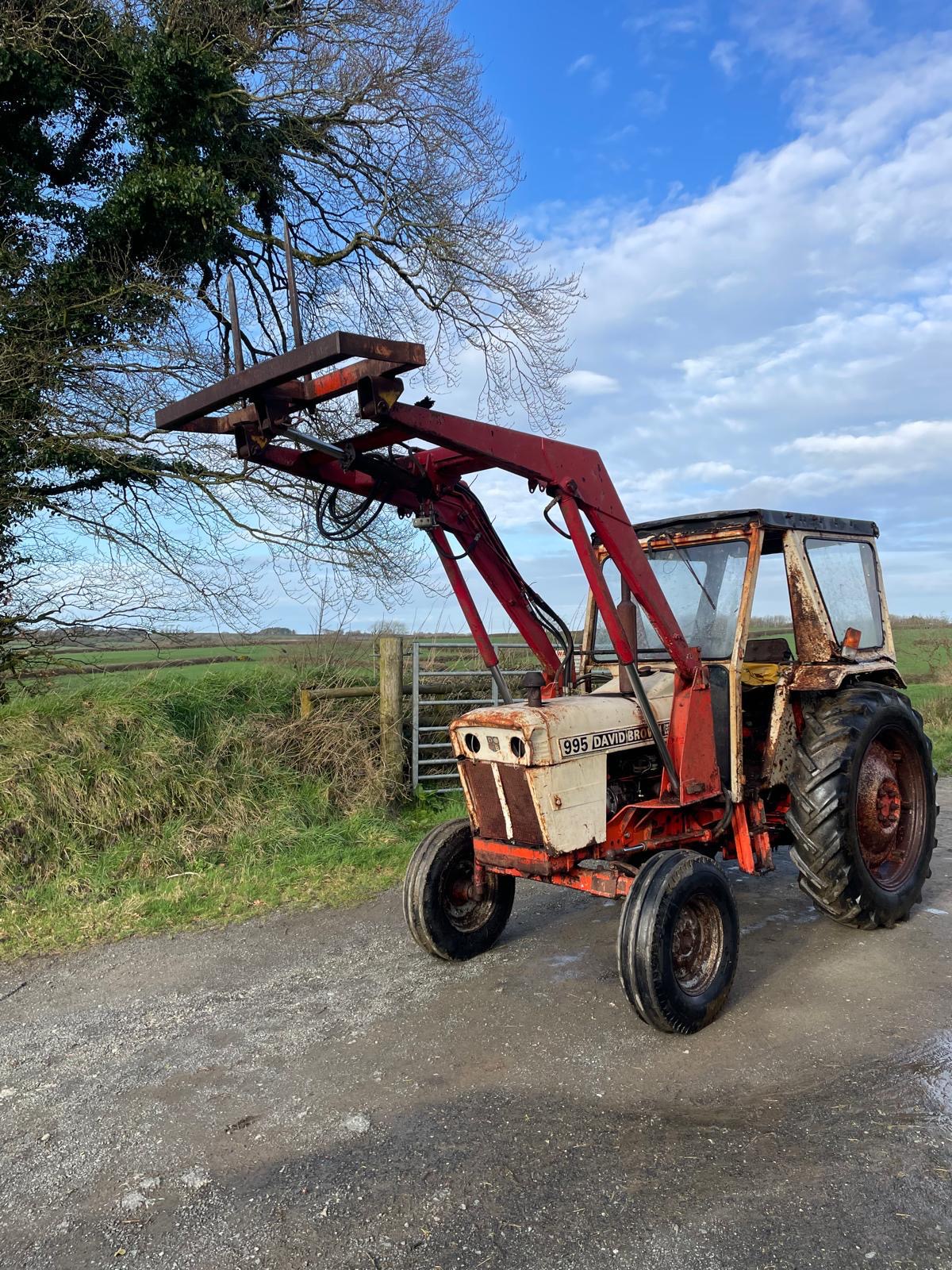 - David Brown 995 with loader with 3rd service and bale spike
