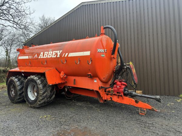 - Abbey 3000 gallon slurry tanker, tandem axle with rear steer, 11,000lpm vacuum pump- vendors comments: good working order, new rear axle bearings and brakes