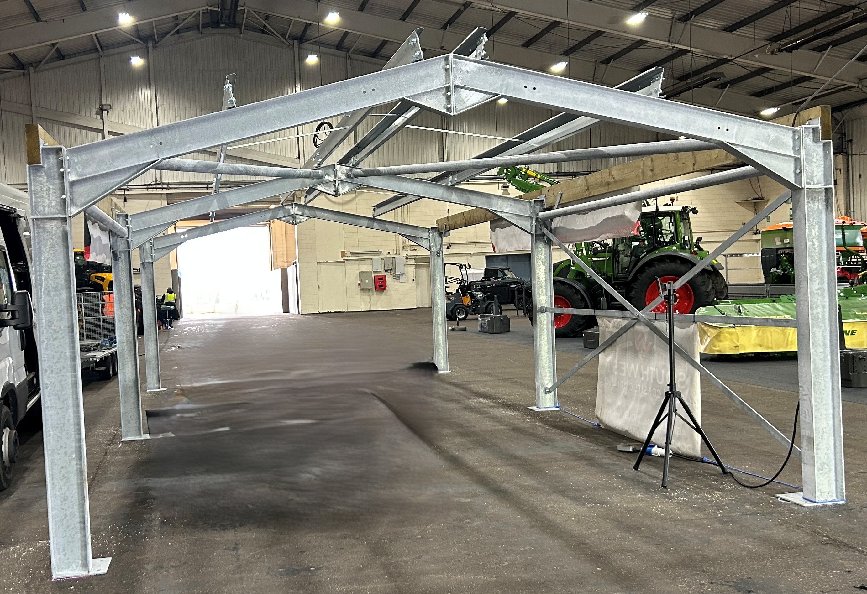 - Steel framed apex building kit build, structure size: 10.000m x 5.000m x 2.400m, portal frames at 5.00m centres, 203 x 133 x 25 UB stanchions, 178 x 102 x 19 UB rafters
