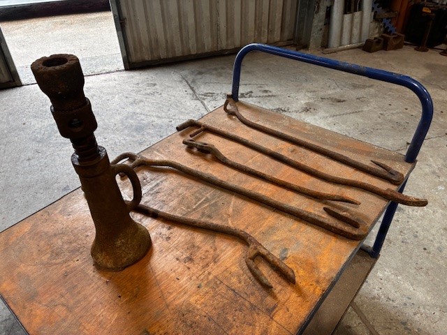 • Selection of vintage metal tools and jack