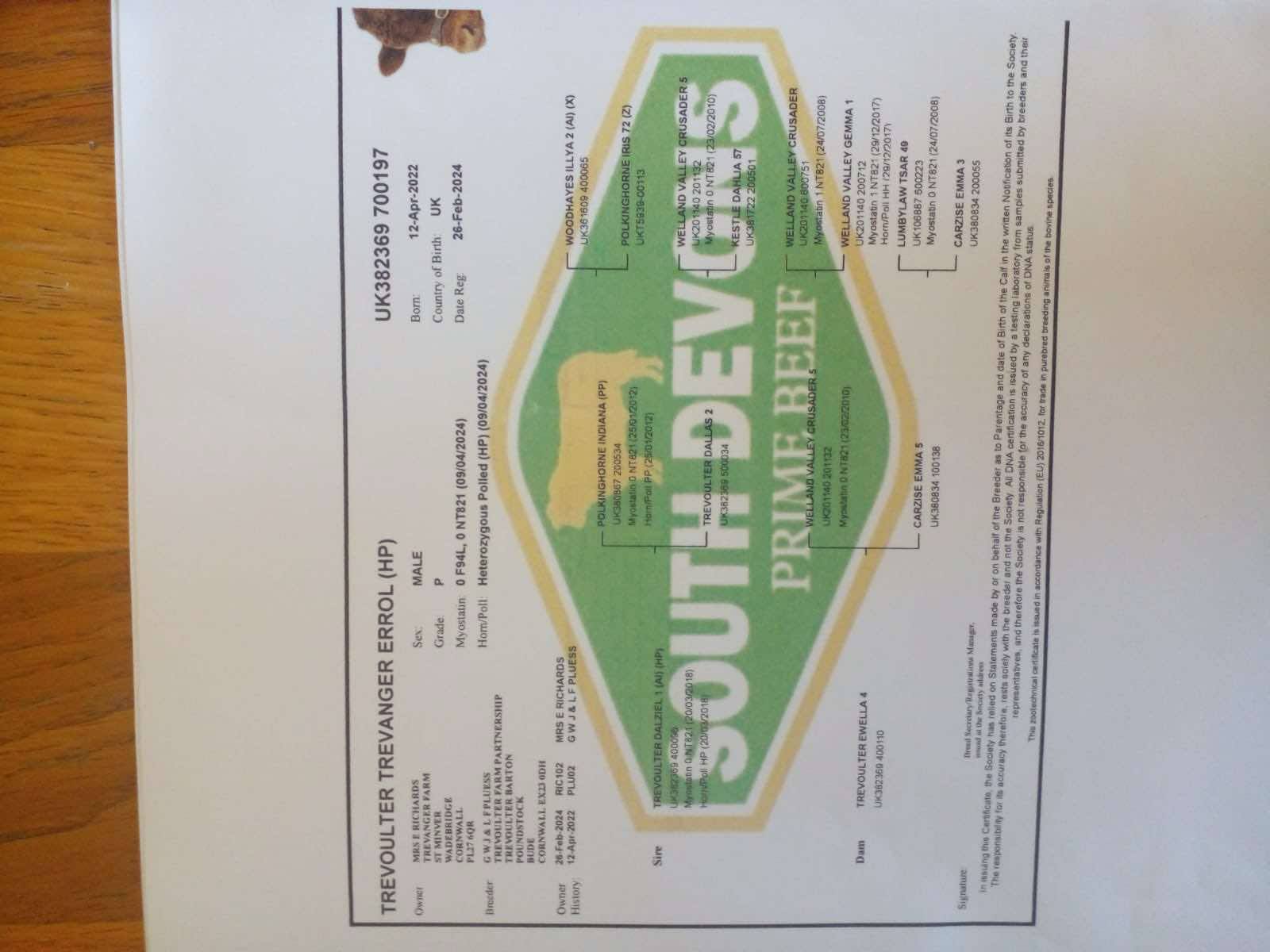 May 20253 year old Pedigree South Devon Bull A tremendous long powerful Bull, been used successfully. Great temperament and super locomotion. Only on offer as keeping Heifer replacements North Cornwall