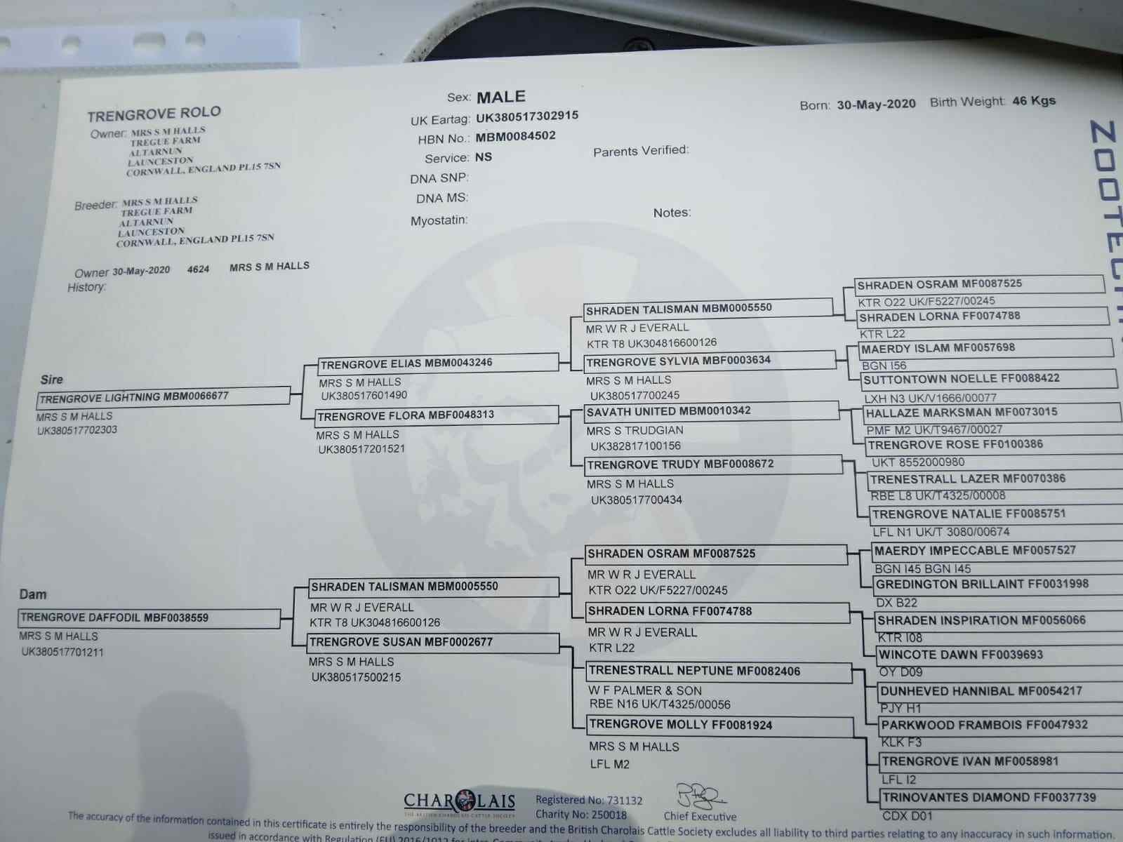 Pedigree Charolais BullA stunning young 19 month old pedigree Bull, great outlook and super temperament. Ready to go on pedigree or commercial