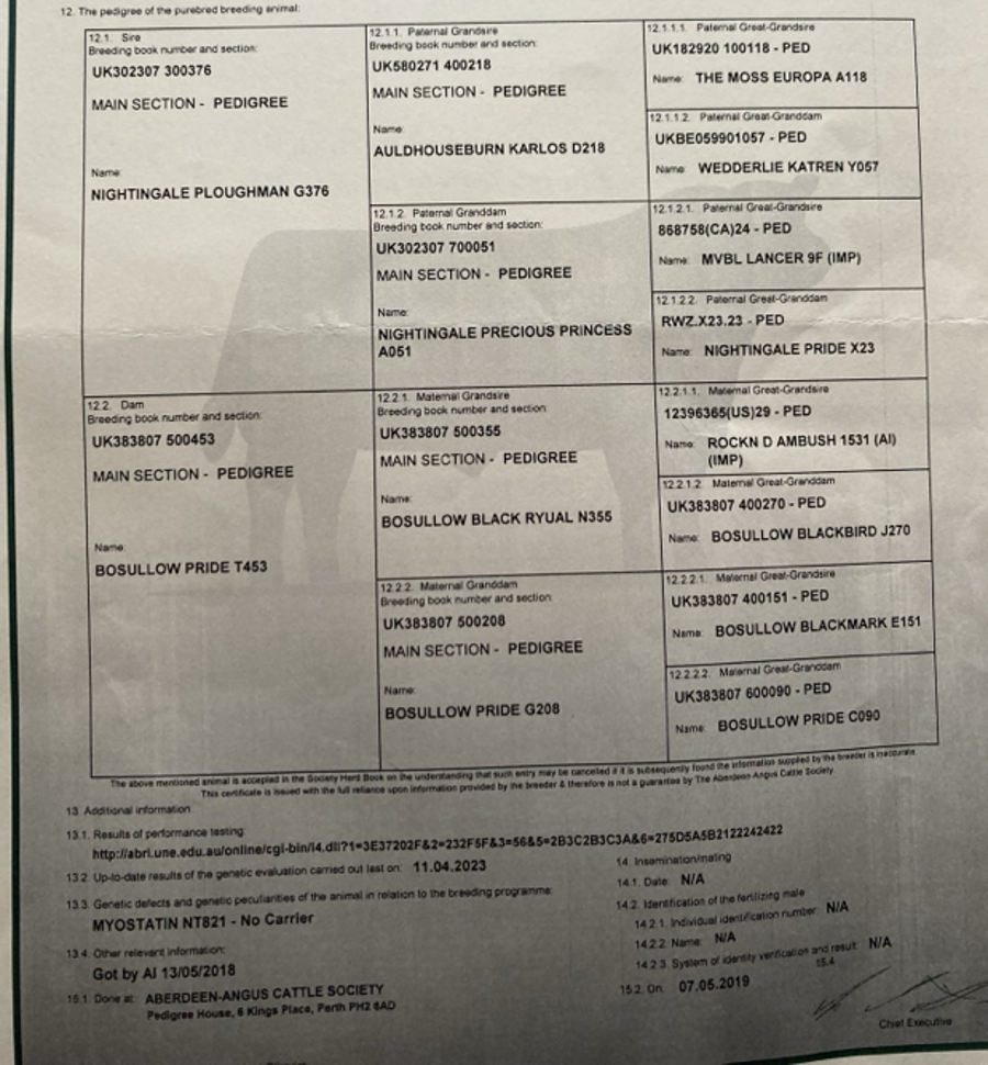 Pedigree Aberdeen Angus Bull.