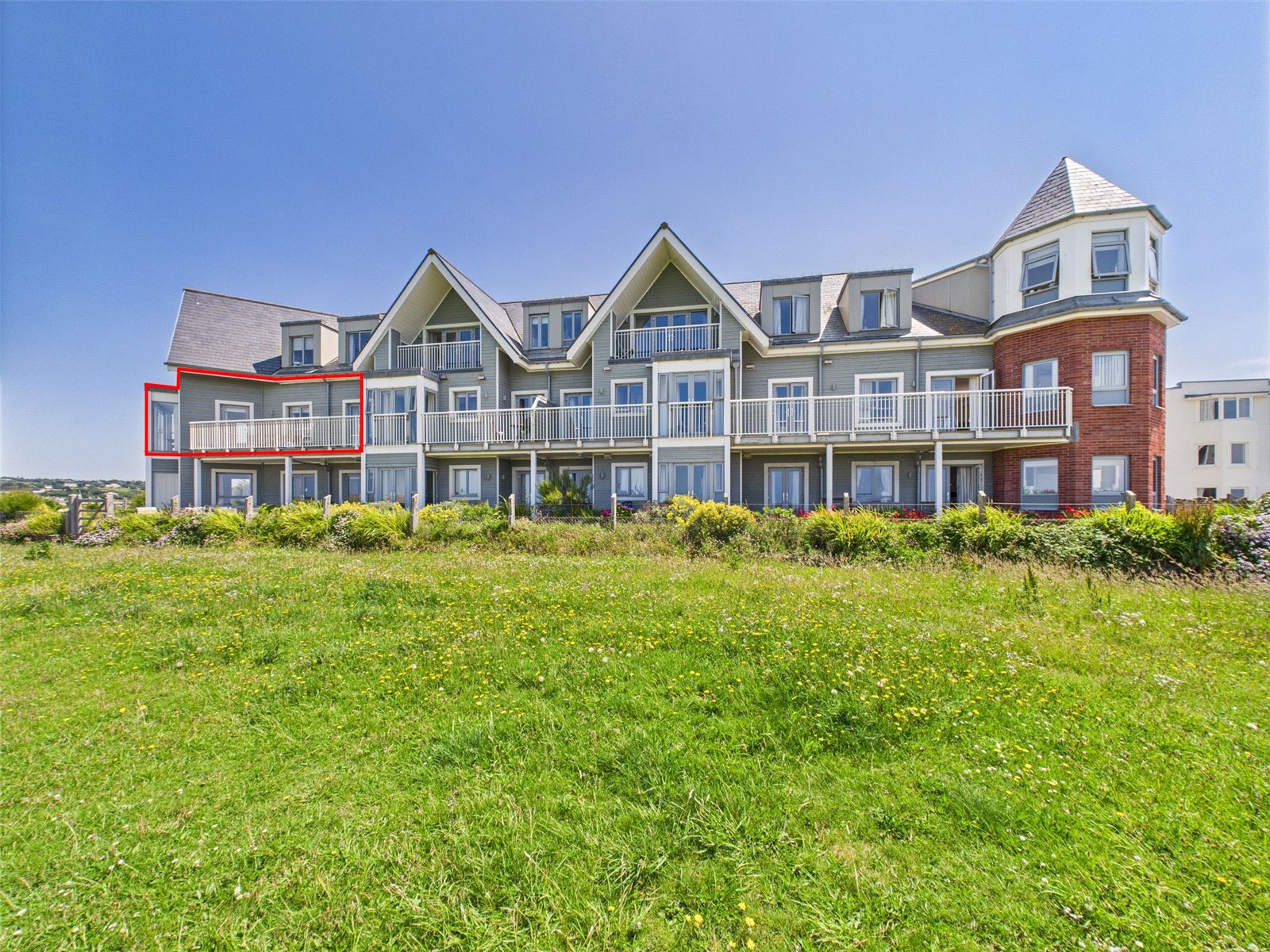 A generously sized balcony offering one of the finest panoramic sea views in the area — stretching over The Downs and across both Summerleaze and Crooklets Beaches. Ideal for a table and chairs to enjoy the scenery.