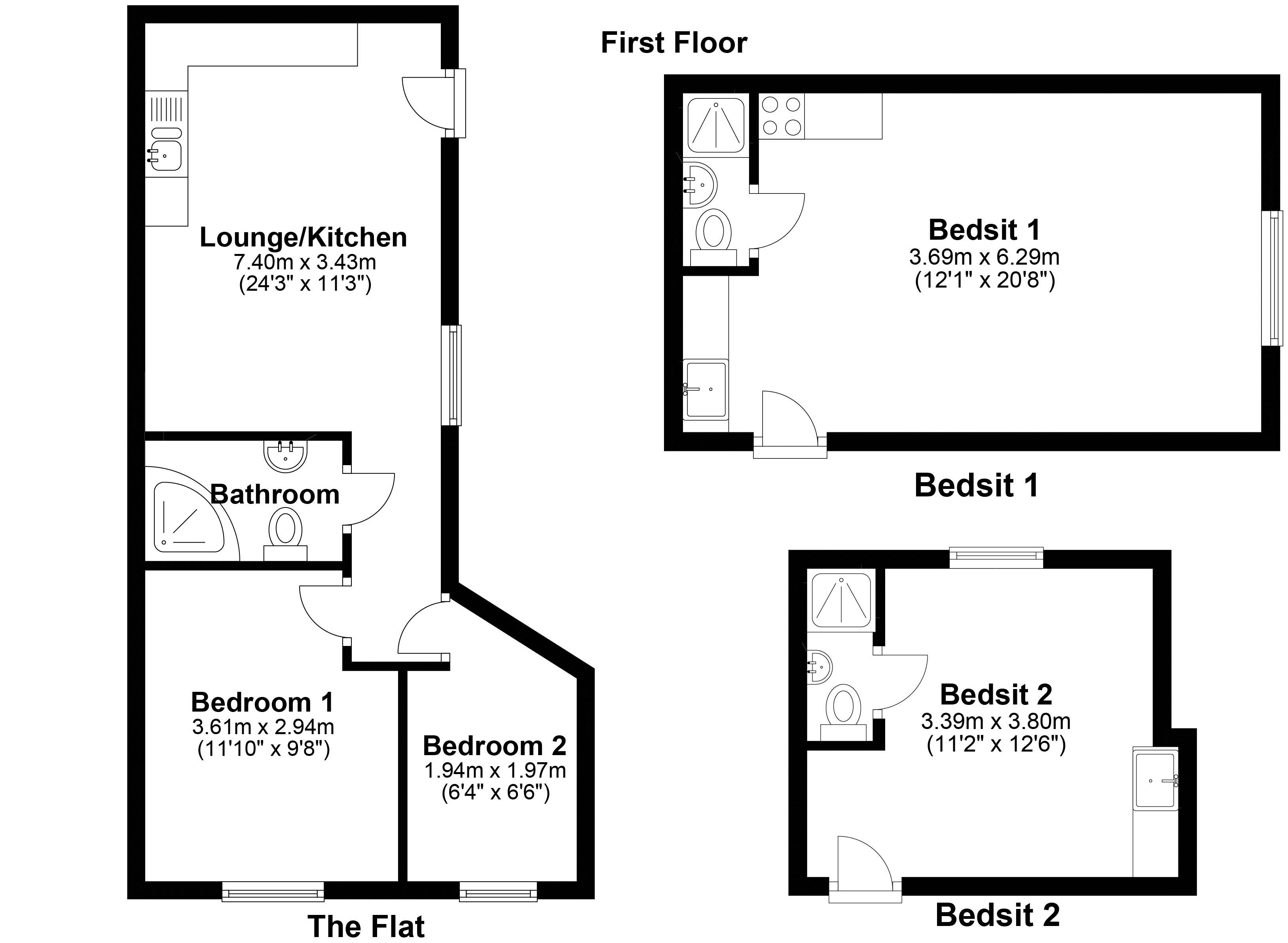FIRST FLOOR All of the bedsits and flats are vacent possesion with separate electricity meters and including gas central heating and water rates.