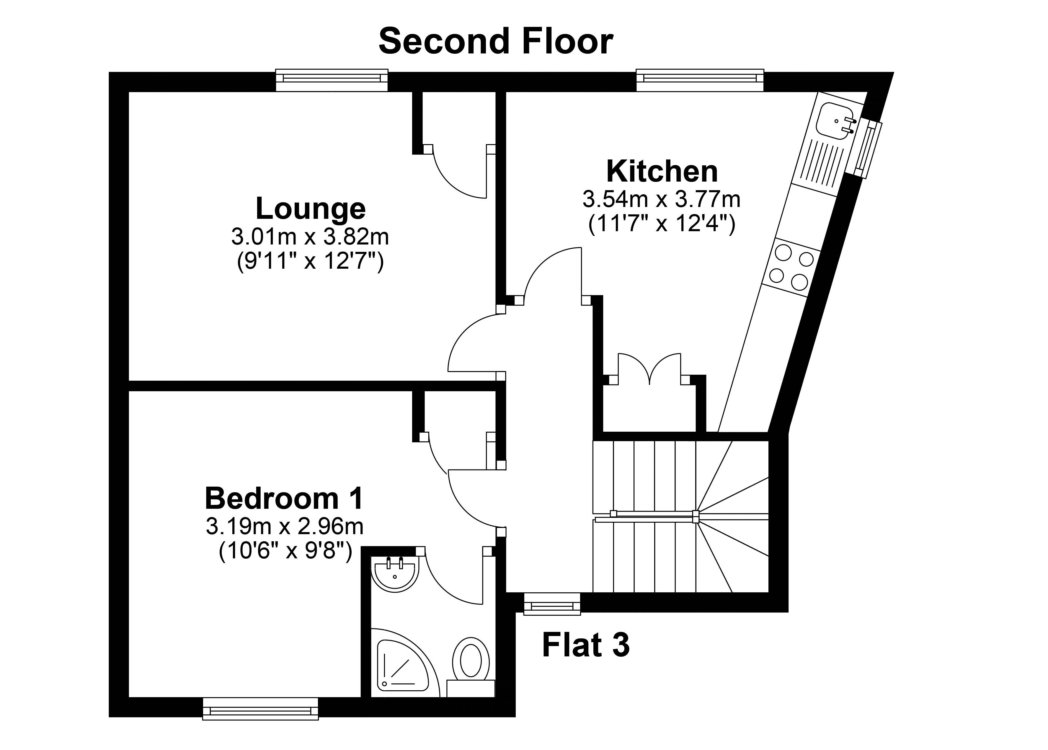 Flat 4 Good size top floor flat with separate kitchen and lounge, double bedroom and previosuly let at £500 per month.
