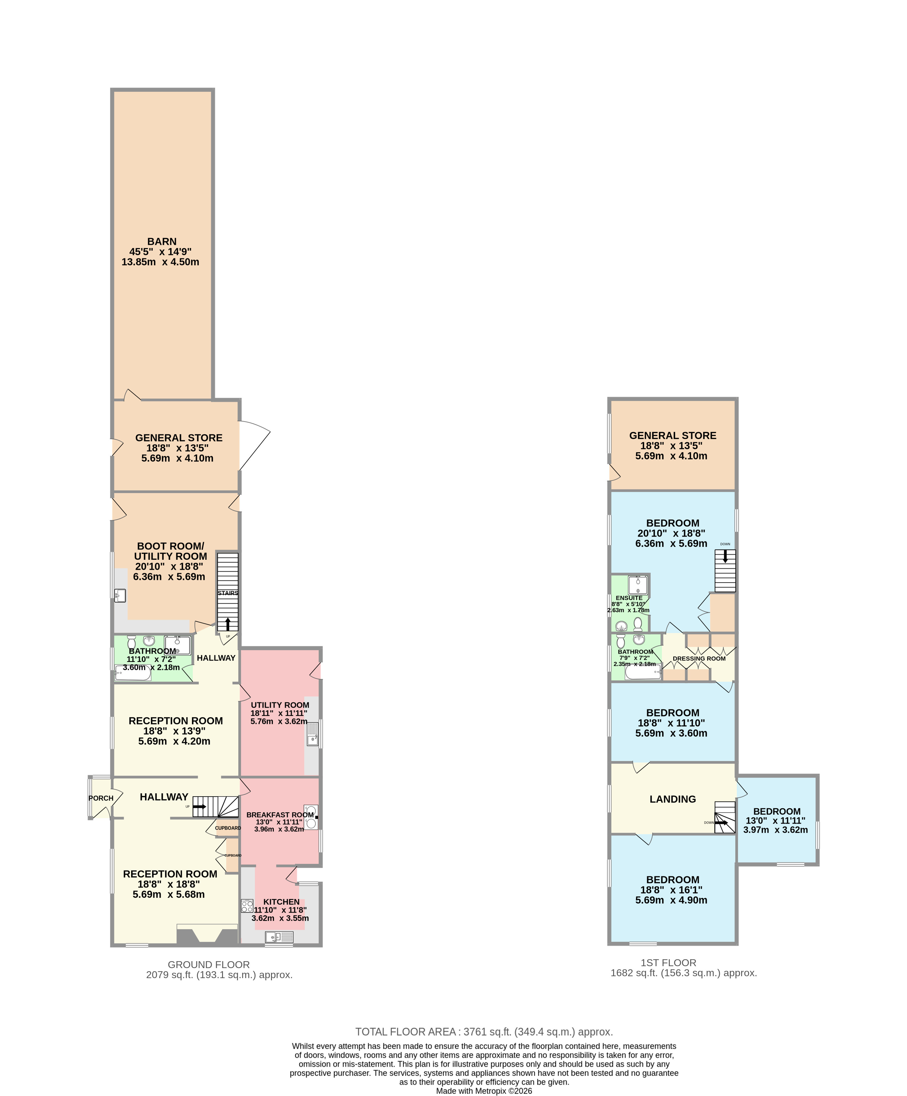 The first floor is arranged to provide the master bedroom with a walkthrough dressing room and en-suite, a second large bedroom with en-suite and two further bedrooms.