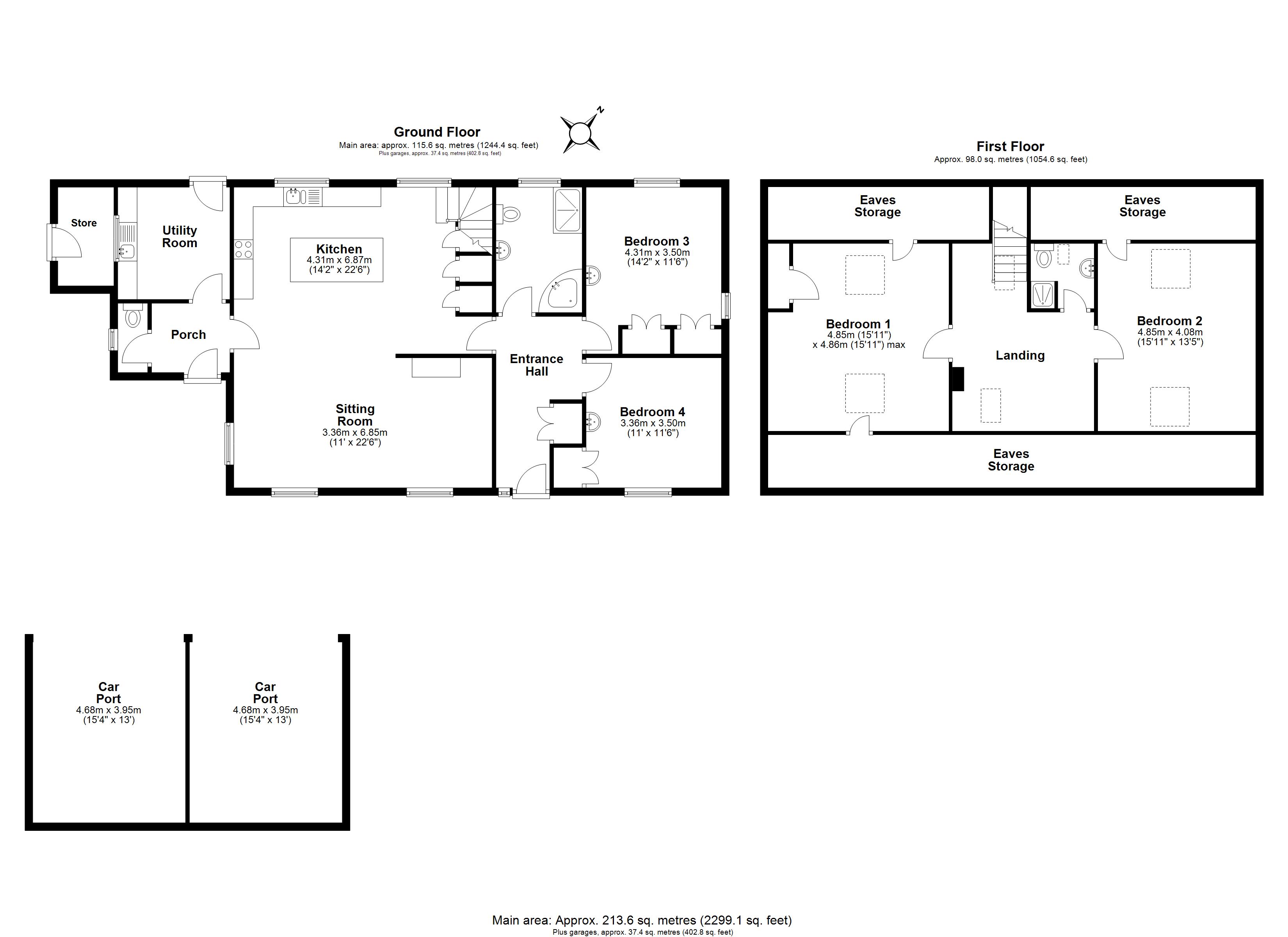 The accommodation is cleverly arranged to make the most of the available space. Accessed directly from the front porch is a WC and a useful utility room fitted with modern units. From here, a door opens into the generous open-plan kitchen/dining/living room, forming the central hub of the home. This light and airy space enjoys an abundance of natural light, with the kitchen fitted with flagstone flooring, a range of modern units with wooden work surfaces and a central island. The adjoining sitting area features a log burner, creating a comfortable and practical living space suitable for everyday use. Beyond, is a family bathroom and two double bedrooms, both fitted with basins, offering flexibility for ground-floor living if required. On the first floor, the property offers two further double bedrooms and a second bathroom. Extensive eaves storage provides additional practical space that is easily accessible.